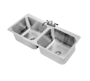 Master the art of flavor with the Advance Tabco DI-2-2012 Drop-In Sink. This 2-compartment sink is designed to meet the rigorous demands of a commercial restaurant kitchen. Made from durable 18 gauge 304 stainless steel, it can withstand heavy use and is resistant to corrosion. The 20" wide x 16" front-to-back x 12" deep bowls provide ample space for washing and rinsing dishes, while the deck mounted 8" swing spout faucet ensures easy access to water. The included basket drains help to prevent clogs and keep the sink clean. Whether you're running a busy restaurant or a bustling caf , this drop-in sink from Advance Tabco is a reliable and efficient choice. With its high-quality construction and practical features, it will help you maintain a clean and organized kitchen, allowing you to focus on creating delicious dishes that will delight your customers.