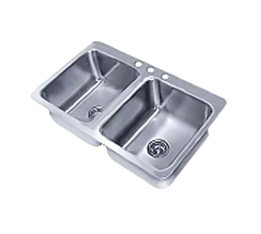 Realize kitchen dreams with the Advance Tabco SS-2-3321-12 Drop-In Sink. This Smart Series sink is designed to meet the demands of a commercial restaurant kitchen. With its 2-compartment self-rim design, it offers convenience and efficiency for food preparation and dishwashing tasks. The 14"W x 16" front-to-back x 12" deep bowls provide ample space for washing large pots, pans, and dishes. The sink also features 8" OC faucet holes, allowing for easy installation of a hot and cold water faucet, as well as a center hole for additional accessories. Made of durable 18/304 stainless steel, this sink is built to withstand the rigors of a busy kitchen. It includes 3-1/2" basket drains and mounting clips for added convenience. Upgrade your restaurant kitchen with the Advance Tabco SS-2-3321-12 Drop-In Sink and experience the perfect blend of functionality and durability.