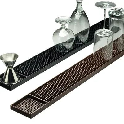 Introducing the American Metalcraft BLM24 Bar Mat, a must-have accessory for any commercial restaurant. Designed to enhance your culinary success, this bar mat is crafted with one-piece rubber construction, ensuring durability and longevity. Measuring 3-1/4" x 27" long, it provides ample space to accommodate various glassware and bar tools, keeping your bar area clean and organized. The black color adds a sleek and professional touch to your establishment's ambiance. With its non-slip surface, this bar mat prevents spills and accidents, ensuring a safe working environment for your staff. Whether you're serving up cocktails or pouring beers, this bar mat is the perfect companion, providing a stable and secure surface for your bartenders. Trust American Metalcraft, a renowned vendor in the industry, and invest in the BLM24 Bar Mat to elevate your bar service and impress your customers.