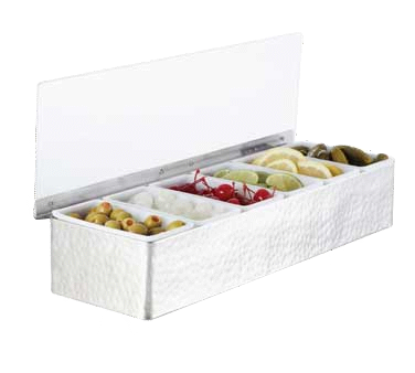 Discover endless possibilities with the American Metalcraft HMCD6 Bar Condiment Holder. This stainless steel dispenser is designed to meet the needs of commercial restaurants, offering a convenient and stylish solution for organizing condiments. With its hammered finish and sleek design, it adds a touch of elegance to any countertop. The 6-compartment layout allows for easy access and organization of various condiments, ensuring efficiency during busy service hours. Made by American Metalcraft, a trusted name in the industry, this condiment holder is built to last and withstand the demands of a commercial kitchen. Whether you're serving ketchup, mustard, or other toppings, this dispenser keeps everything within reach, making it a must-have for any restaurant. Upgrade your condiment station with the American Metalcraft HMCD6 Bar Condiment Holder and elevate your dining experience.