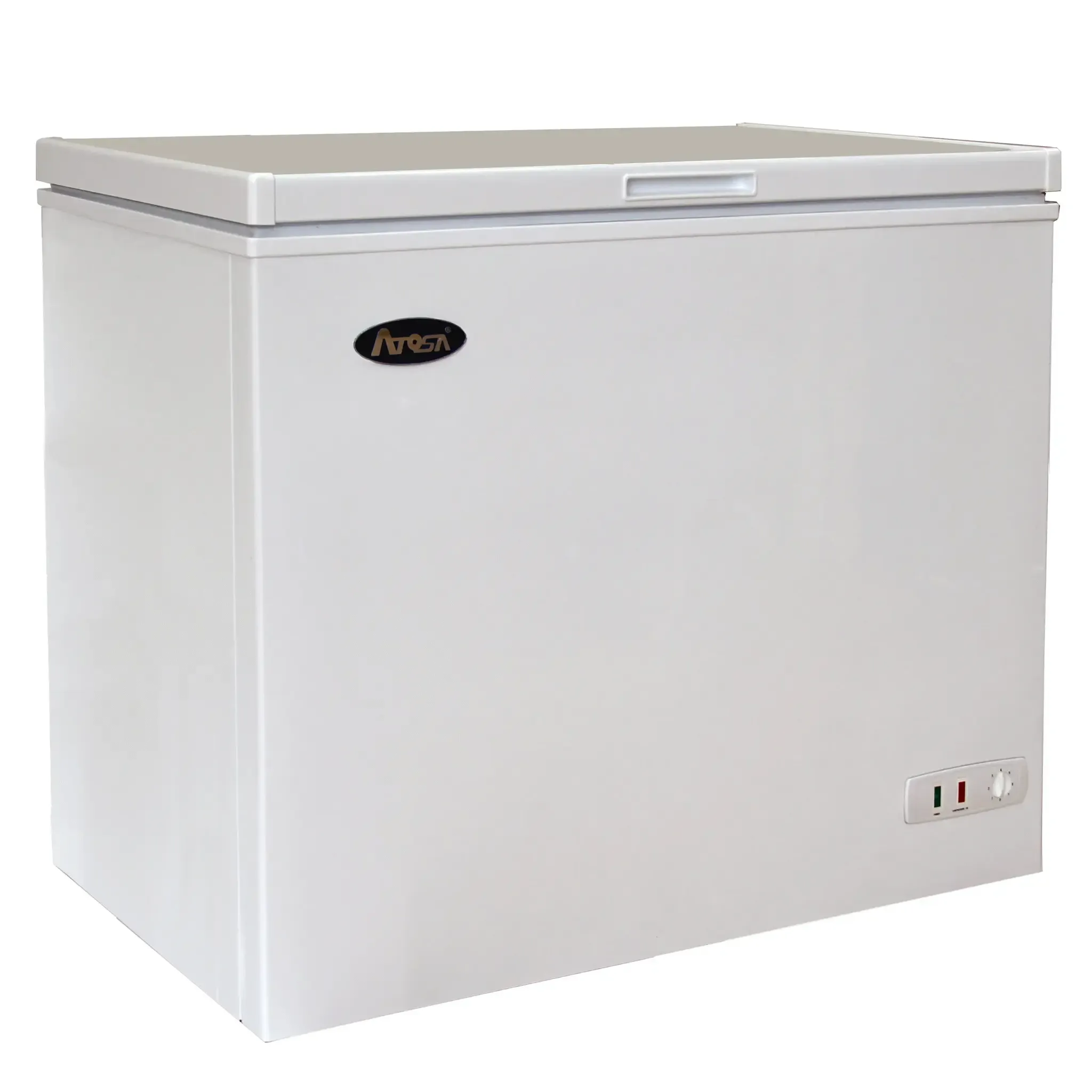 Take your kitchen to the next level with the Atosa USA, MWF9007 Chest Freezer. This commercial-grade chest freezer is designed to meet the demands of a busy restaurant kitchen. With a spacious 7 cu. ft. capacity, it provides ample storage space for all your frozen ingredients and products. The solid hinged lid ensures that the temperature remains consistent, while the epoxy coated white baskets help you organize your items efficiently. The temperature range of -10° to -1°F ensures that your food stays frozen and fresh for longer periods. The white coated steel exterior and white coated aluminum interior not only make it durable but also easy to clean. The side-mounted self-contained refrigeration system ensures efficient cooling, while the defrost drain makes maintenance hassle-free. With 1" casters, this chest freezer is easy to move around your kitchen. Trust Atosa USA to deliver high-quality, reliable equipment for your commercial restaurant needs.