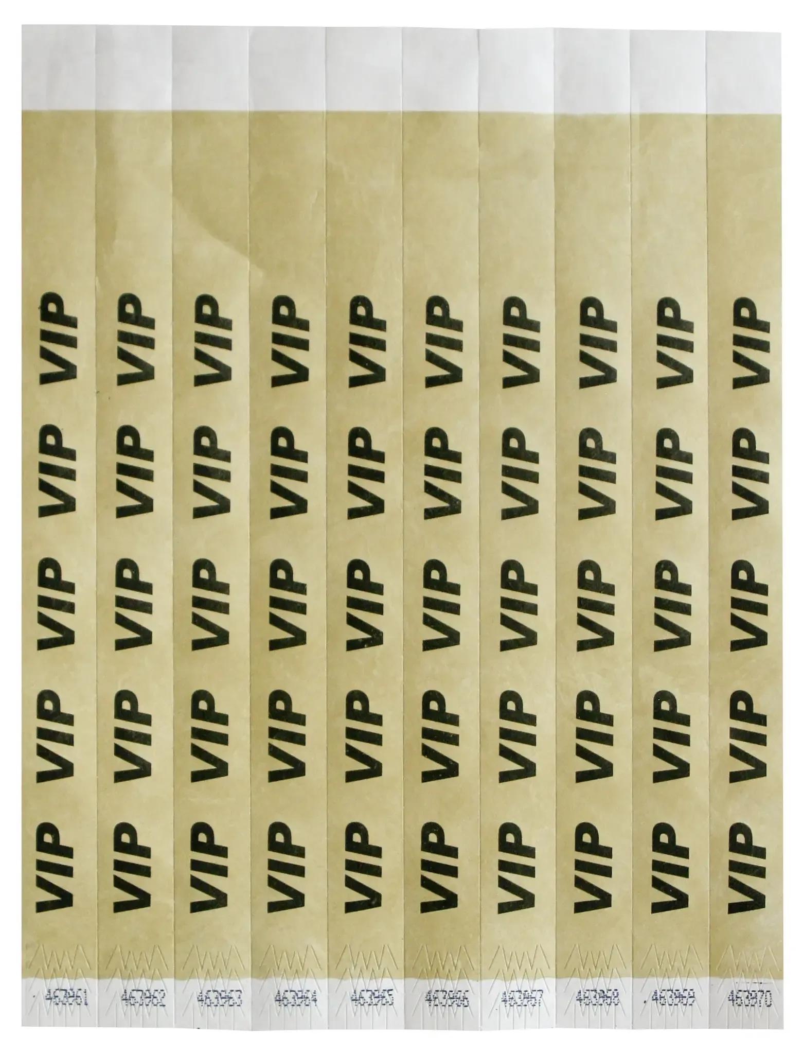 Invest in top-quality foodservice equipment with Bar Maid/Glass Pro WB-VIP Bar Supplies. Made of tear-resistant Tyvek material, these wristbands are designed to withstand the demands of a busy restaurant environment. Each wristband is sequentially numbered, allowing for easy tracking and identification of VIP guests. The gold and black VIP design adds a touch of elegance and sophistication to any event. Whether you're hosting a private party, a corporate function, or a special event, these wristbands will ensure that your VIP guests receive the exclusive treatment they deserve. Upgrade your restaurant's guest management system with Bar Maid/Glass Pro WB-VIP Bar Supplies.