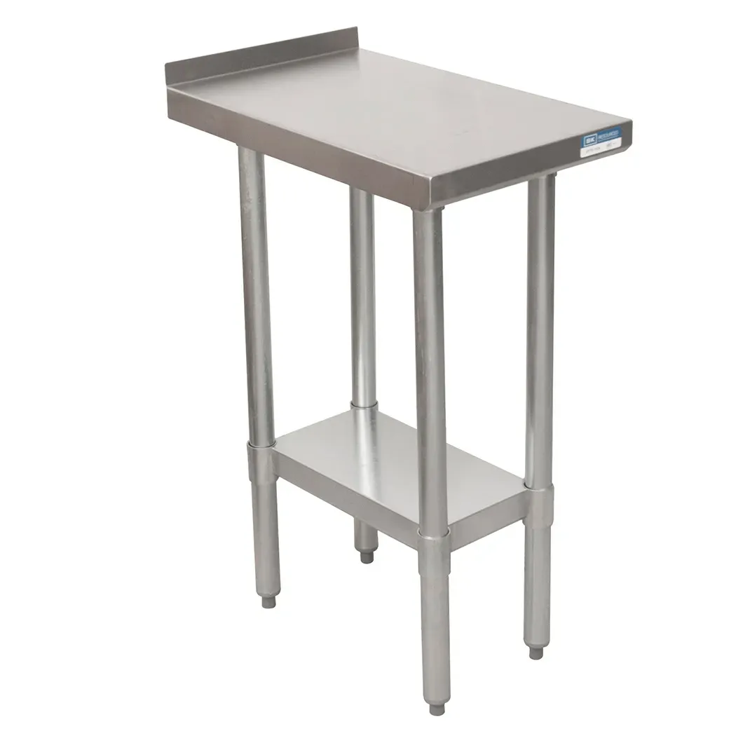 Transform your food service with the BK Resources SFTS-1530 Work Table. This versatile table is designed to meet the demands of a commercial restaurant, providing a durable and functional workspace. The 18/430 stainless steel top ensures longevity and easy cleaning, while the 1-1/2" riser at the rear prevents spills and messes from reaching the floor. The adjustable stainless steel undershelf offers convenient storage space for utensils, ingredients, and equipment, keeping everything within reach. The stainless steel legs with adjustable high impact corrosion resistant feet provide stability and allow for easy leveling on uneven surfaces. With its NSF certification, you can trust that this work table meets the highest standards of cleanliness and sanitation. Whether you need a prep station, a serving area, or additional workspace, the BK Resources SFTS-1530 Work Table is the perfect solution for your commercial restaurant.