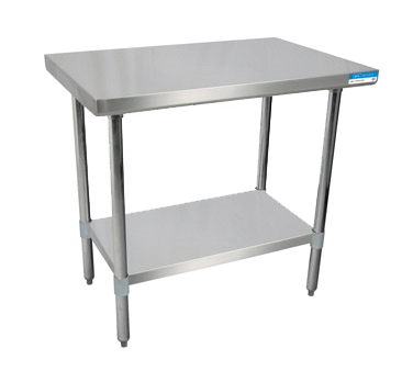 Fuel your restaurant's success with the BK Resources SVT-4830 Work Table. This stainless steel work table is designed to meet the demands of a busy commercial kitchen. The 48"W x 30"D stainless steel top provides ample space for food preparation, while the turndown edges on all sides ensure a clean and safe work area. Reinforced with channels, this work table is built to withstand heavy use and is easy to clean. The adjustable stainless steel undershelf allows for convenient storage of kitchen essentials, keeping them within reach. With 1-5/8" dia. stainless steel legs and stainless steel over plastic adjustable bullet feet, this work table is stable and sturdy. NSF certified, you can trust the quality and durability of this BK Resources work table. Upgrade your kitchen with the SVT-4830 and experience the difference it makes in your restaurant's efficiency and productivity.