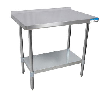 Elevate your cuisine with the BK Resources VTTR-6030 Work Table. This stainless steel work table is designed to meet the demands of a commercial restaurant kitchen. The 18/430 stainless steel top with turndown edges on the front and sides provides a durable and easy-to-clean surface for food preparation. Reinforced with channels, this work table is built to withstand heavy use and maintain its integrity over time. The 1-1/2" rear riser helps to contain spills and prevent items from falling off the back of the table. The adjustable galvanized undershelf offers additional storage space for kitchen essentials, while the adjustable high-impact corrosion-resistant feet ensure stability on any surface. With its NSF certification, you can trust that this work table meets the highest standards of cleanliness and sanitation. Upgrade your kitchen with the BK Resources VTTR-6030 Work Table and experience the difference in efficiency and functionality.
