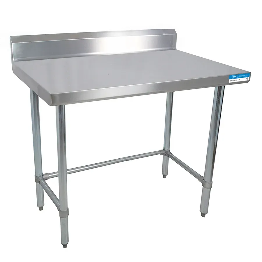Invest in superior quality with the BK Resources VTTR5OB-7230 Work Table. This work table is designed to meet the demands of a busy commercial restaurant kitchen. The 18/430 stainless steel top is not only durable but also easy to clean, making it perfect for food preparation. The turndown edges on the front and sides prevent spills and messes from spreading, while the 5" backsplash provides additional protection. The open base with galvanized side and rear bracing ensures stability and strength, even during heavy use. The 1-5/8" dia. galvanized legs are adjustable, allowing you to customize the height to suit your needs. With its high impact corrosion resistant feet, this work table is built to last. Trust BK Resources for all your commercial kitchen needs.