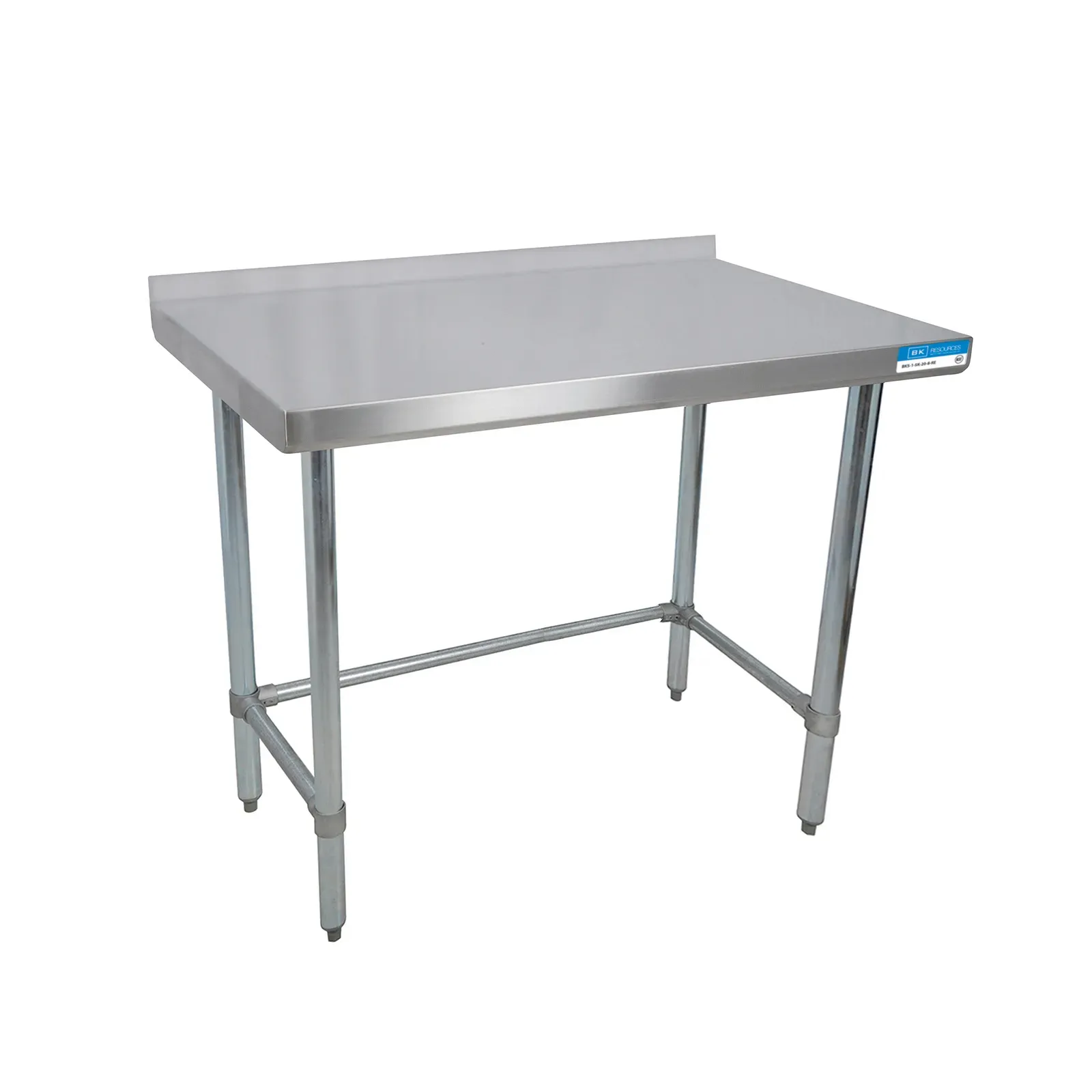Deliver food perfection with the BK Resources VTTROB-4830 Work Table. This stainless steel work table is designed to meet the demands of a commercial restaurant kitchen. The 48"W x 30"D stainless steel top provides ample space for food preparation, while the turndown on the front and sides helps to contain spills and prevent messes. Reinforced with channels, this work table is built to withstand the rigors of a busy kitchen. The 1-1/2" rear riser adds extra convenience and functionality. The open base with galvanized side and rear bracing ensures stability and durability. The 1-5/8" dia. galvanized legs are adjustable, allowing you to customize the height to suit your needs. With high impact corrosion resistant feet, this work table is built to last. NSF approved, this work table meets the highest standards of cleanliness and sanitation. Trust BK Resources for quality and reliability in your commercial kitchen.