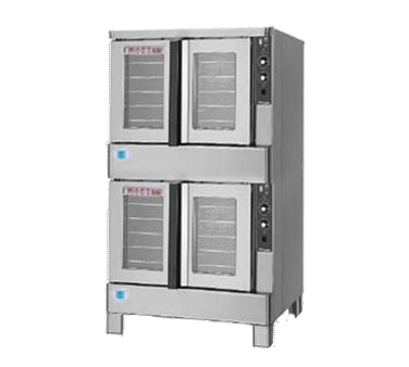 Cook with confidence with the Blodgett ZEPH100E DOUBLE Convection Oven. This electric, double-deck oven is perfect for commercial restaurant use. With a standard depth and a capacity of 5 pans per compartment, you can easily cook large quantities of food to meet the demands of your customers. The SSI-D solid state infinite controls with a digital timer allow for precise temperature and time settings, ensuring consistent and delicious results every time. The two-speed fan helps to evenly distribute heat throughout the oven, while the vent connector helps to keep the kitchen air clean and fresh. The dependent glass doors and interior light allow you to easily monitor the cooking process without opening the oven, saving energy and maintaining temperature consistency. Made with stainless steel front, sides, and top, this oven is durable and easy to clean. The 6" stainless steel legs provide stability and make it easy to move the oven for cleaning or maintenance. This Blodgett ZEPH100E DOUBLE Convection Oven is ETL, NSF, and ENERGY STAR certified, guaranteeing its quality and efficiency. Upgrade your restaurant kitchen with this reliable and high-performing oven.