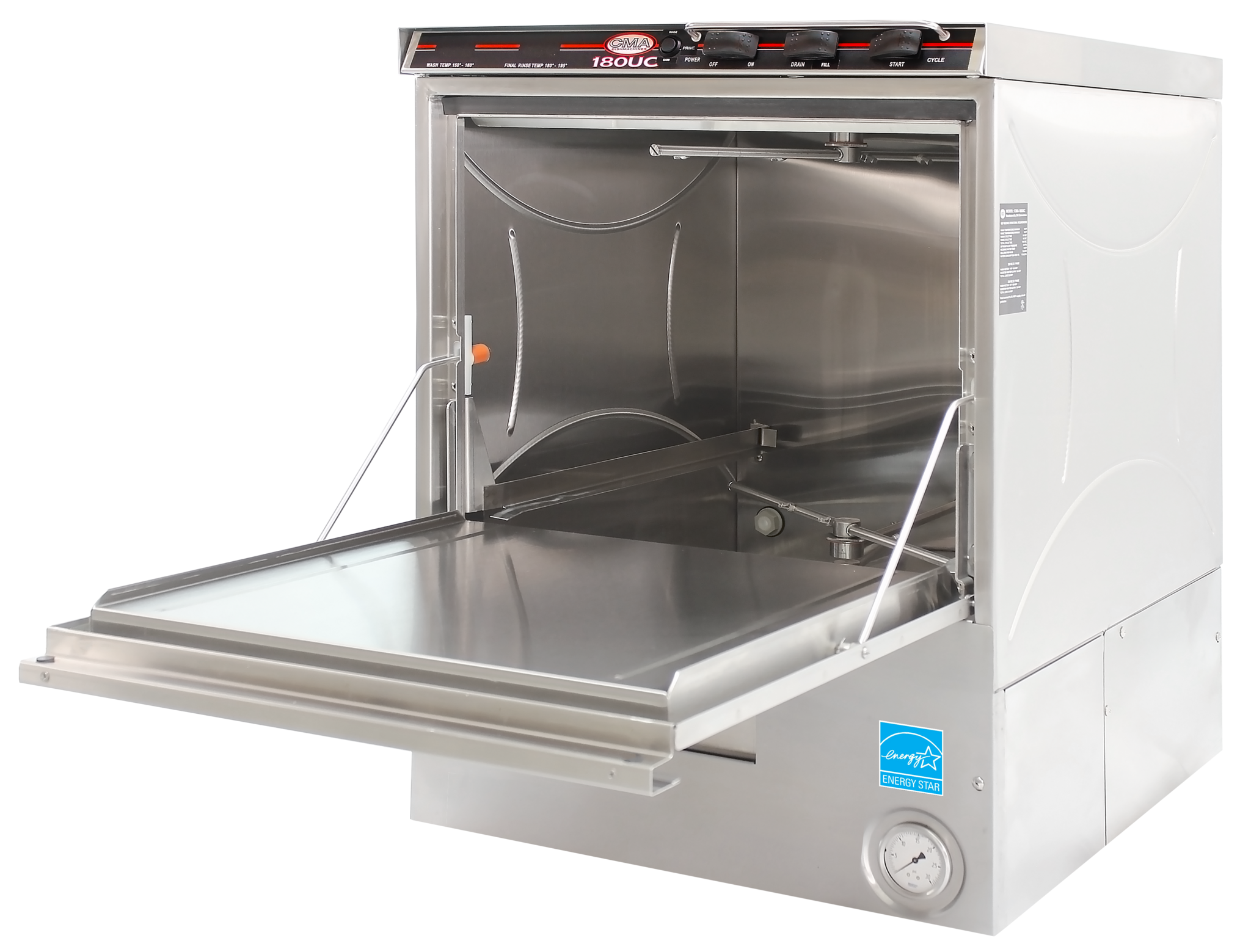 Introducing the CMA Dishmachines, 180C, Dishwasher, Door Type - the perfect solution to simplify restaurant operations. This high-quality dishwasher is designed to meet the demands of a busy commercial restaurant, offering efficiency and convenience. With its corner design and compact dimensions of 25-1/2"W x 25"D x 60"H, it optimizes space utilization in your kitchen. The high-temperature sanitizing feature ensures that your dishes are thoroughly cleaned and sanitized, meeting the highest hygiene standards. The top-mounted control box allows for easy operation and monitoring, while the external Poly Pro scrap accumulator helps to keep your dishwasher clean and free from debris. The stainless steel construction ensures durability and longevity, making it a reliable investment for your restaurant. With a capacity of 60 racks per hour, this dishwasher can handle high volumes of dishes, saving you time and effort. Additionally, it is ENERGY STAR certified, ensuring energy efficiency and cost savings. Upgrade your restaurant's dishwashing capabilities with the CMA Dishmachines, 180C, Dishwasher, Door Type.
