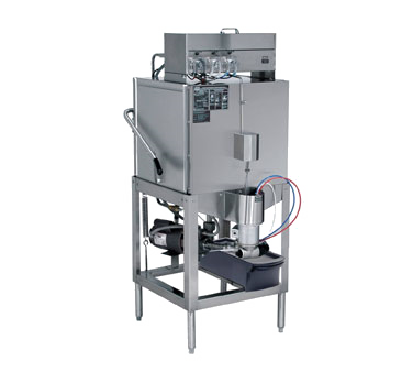 Elevate your culinary experience with the CMA Dishmachines AH Dishwasher. This top-of-the-line door type dishwasher is designed to meet the demands of a busy commercial restaurant. With its low temperature chemical sanitizing feature and priming switches, you can ensure that your dishes are thoroughly cleaned and sanitized. The top mounted controls and auto "start/stop" function make it easy to operate, saving you time and effort. The straight-thru design allows for smooth and efficient dishwashing, with a capacity of up to 40 racks per hour. The dishwasher also comes with a delimer switch and a Poly Pro scrap accumulator, making it easy to maintain and clean. Made with stainless steel construction, this dishwasher is built to last and is NSF and cULus certified. Included with the dishwasher are one open rack and one peg rack, providing versatility for different types of dishes. Upgrade your restaurant's dishwashing capabilities with the CMA Dishmachines AH Dishwasher.