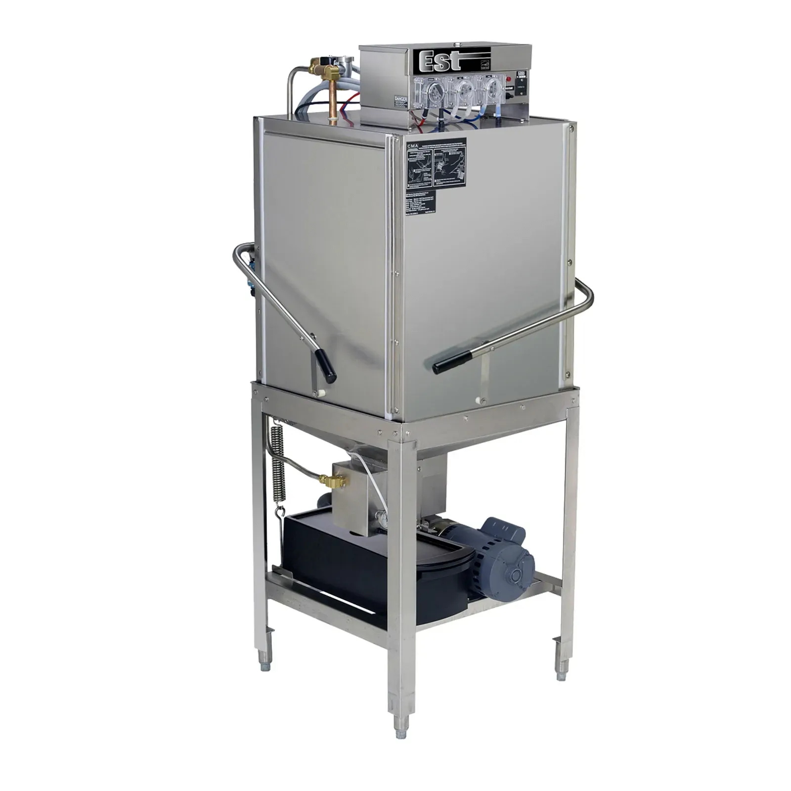Boost your restaurant's performance with the CMA Dishmachines, EST-C EXT Dishwasher, Door Type. This energy-efficient dishwasher is designed to meet the demands of a busy commercial kitchen. With its low water and low temperature chemical sanitizing capabilities, it ensures thorough cleaning while saving on resources. The top-mounted controls make it easy to operate, and the corner design allows for efficient use of space. With a capacity of 40 racks per hour, this dishwasher can handle high volumes of dishes, ensuring a smooth workflow in your restaurant. The built-in chemical pumps and deliming system make maintenance hassle-free, while the Poly Pro scrap accumulator helps keep the wash water clean. The stainless steel construction ensures durability and easy cleaning. With its ENERGY STAR certification, this dishwasher not only saves you money on utility bills but also helps reduce your restaurant's environmental footprint. Upgrade your dishwashing capabilities with the CMA Dishmachines, EST-C EXT Dishwasher, Door Type.