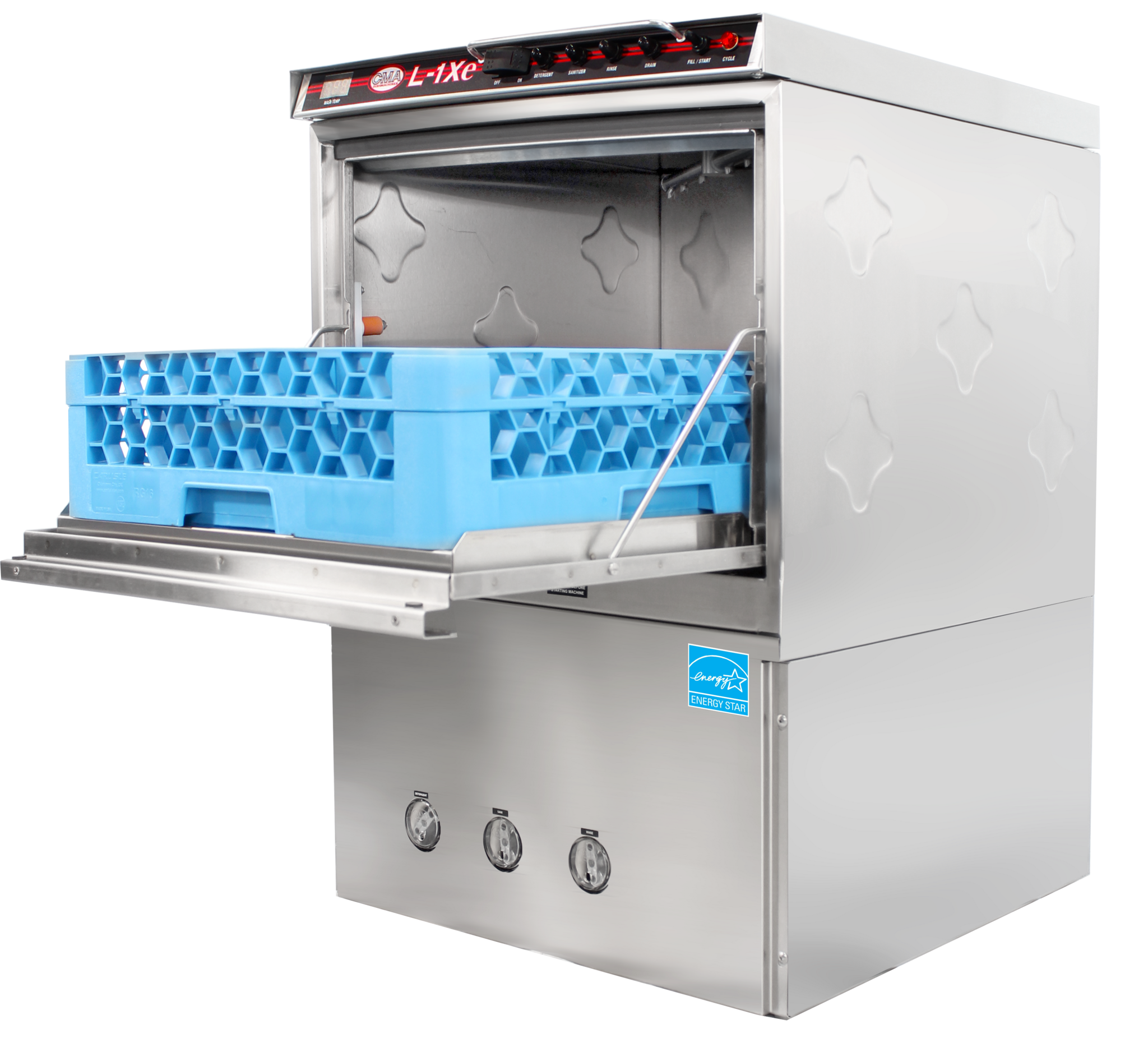 Introducing the CMA Dishmachines, L-1Xe w/Heater, Dishwasher, Undercounter - the ultimate solution to dominate the culinary world. This undercounter dishwasher is designed to meet the demanding needs of commercial restaurants, ensuring efficient and thorough cleaning of dishes and glassware. With a low temperature chemical sanitizing system, this dishwasher can handle up to 30 racks per hour, providing a high level of productivity. The built-in chemical pumps and deliming system make maintenance a breeze, while the upper and lower stainless steel wash arms with reinforced end caps ensure a thorough and consistent clean. The stainless steel construction guarantees durability and longevity, while the immersion heater ensures optimal water temperature for effective cleaning. This dishwasher also includes an open and peg rack, allowing for versatile loading options. NSF, UL, cUL, and Energy Star certified, this CMA Dishmachines dishwasher is the perfect addition to any commercial restaurant, delivering exceptional performance and reliability.