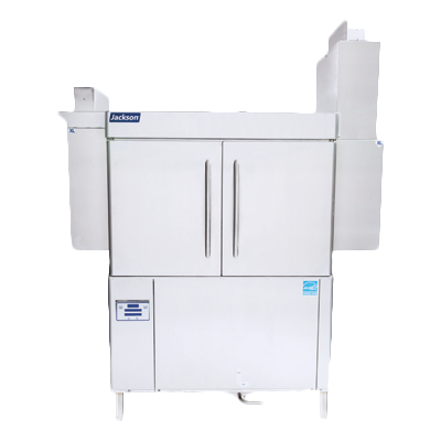 Revamp your kitchen effortlessly with modern solutions using the Jackson WWS RACKSTAR 44CE ENERGY RECOVERY Dishwasher. This conveyor-type dishwasher is designed specifically for commercial restaurant use, offering high temperature sanitization and energy recovery capabilities. With a single tank design and a capacity of approximately 223 racks per hour, this dishwasher ensures efficient and thorough cleaning while conserving water and energy. The fully automatic operation, including auto-fill and digital temperature readout, simplifies the dishwashing process, allowing your staff to focus on other tasks. The double-wall insulated doors and EnergyGuard controls enhance energy efficiency, while the stainless steel construction ensures durability and easy maintenance. The dishwasher also features Dual Rainbow Rinse options, adjustable damper, vent fan control, and splash shields for added convenience and safety. Upgrade your restaurant's dishwashing system with the Jackson WWS RACKSTAR 44CE ENERGY RECOVERY Dishwasher and experience improved efficiency and sustainability.