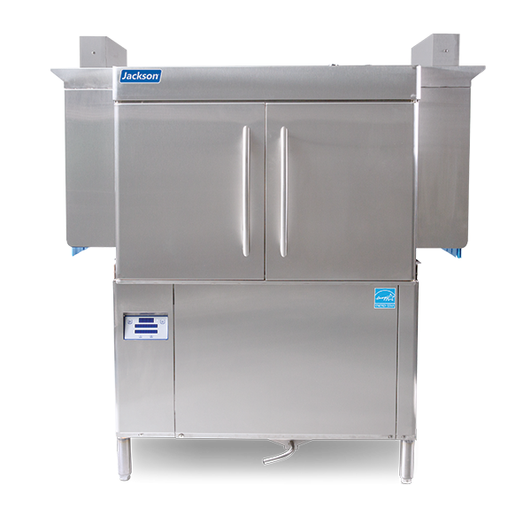 Equip your kitchen with innovative solutions using the Jackson WWS, RACKSTAR 44CEL Dishwasher, Conveyor Type. This high-capacity dishwasher is designed for commercial restaurant use, offering a convenient and efficient way to clean dishes. With a capacity of approximately 223 racks per hour, this dishwasher can handle the demands of a busy kitchen. The low temperature chemical sanitizing with electric tank heat ensures that dishes are thoroughly cleaned and sanitized. The fully automatic operation, including auto-fill and digital temperature readout, makes it easy to use and monitor. The double-wall insulated doors on the front and EnergyGuard controls help to conserve energy and reduce operating costs. The Dual Rainbow Rinse feature allows you to choose between Econo or Turbo settings, depending on your needs. Made with stainless steel construction and adjustable bullet feet, this dishwasher is built to last and can be easily customized to fit your space. Trust the Jackson WWS RACKSTAR 44CEL Dishwasher to deliver exceptional performance and reliability in your commercial restaurant.