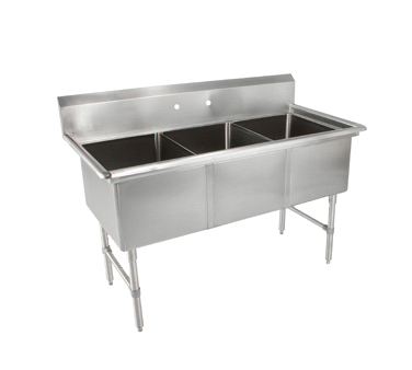 Modernize your service with smart tools through the John Boos, 3B18244, Sink, (3) Three Compartment. This stainless steel sink is designed to meet the demands of a busy commercial restaurant. With three 18W x 24 front-to-back x 14 deep compartments, it provides ample space for washing, rinsing, and sanitizing dishes. The 10H boxed backsplash with a 45 top and 2 return ensures that water stays contained, while the splash mount faucet holes with 8 centers make it easy to install the necessary fixtures. The die-stamped drain openings measure 3-12, allowing for efficient drainage. The stainless steel construction and adjustable side bracing guarantee durability and stability, while the adjustable bullet feet ensure easy leveling on any surface. NSF and CSA-Sanitation certified, this sink meets the highest standards of cleanliness and hygiene. Upgrade your restaurant's efficiency and cleanliness with the John Boos, 3B18244, Sink, (3) Three Compartment.