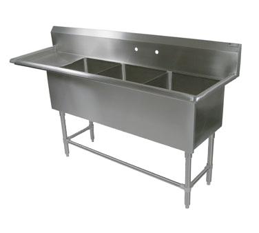 Modernize operations with smart choices using the John Boos, 3PB24-1D24L, Sink, (3) Three Compartment. This commercial-grade sink is designed to streamline your restaurant's workflow and enhance efficiency. With three 24" x 24" x 12" deep compartments, it provides ample space for washing, rinsing, and sanitizing dishes, utensils, and cookware. The 10" high boxed backsplash with a 45° top and 2" return prevents water from splashing onto surrounding surfaces, keeping your kitchen clean and dry. The sink is constructed from durable 16-gauge 300-series stainless steel, ensuring long-lasting performance in a demanding restaurant environment. It features adjustable stainless steel legs and front and side bracing, allowing you to customize the sink's height and stability. The sink also includes two sets of splash mount faucet holes with 8" centers, providing flexibility for different faucet configurations. NSF and CSA-Sanitation certified, this John Boos sink is a reliable and hygienic choice for any commercial kitchen.