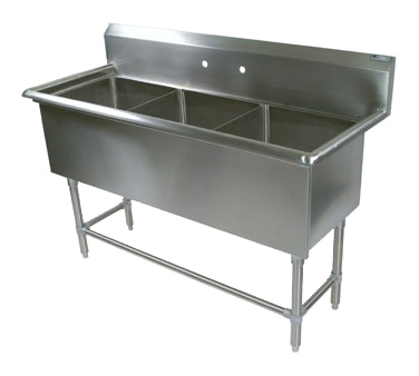Modernize operations with smart choices using the John Boos, 43PB18, Sink, (3) Three Compartment. This commercial-grade sink is designed to streamline your restaurant's workflow and enhance efficiency. With its 3-compartment design, you can easily separate and organize your dishwashing tasks, ensuring a smooth and hygienic operation. The sink features three 18" x 18" x 12" deep compartments, providing ample space for washing, rinsing, and sanitizing dishes. The 10" high boxed backsplash with a 45° top and 2" return prevents water from splashing onto the surrounding area, keeping your kitchen clean and dry. Made from durable 14300 stainless steel, this sink is built to withstand the demands of a busy commercial kitchen. The adjustable front and side bracing, along with the stainless steel legs and bullet feet, ensure stability and easy leveling. NSF and CSA-Sanitation certified, this sink meets the highest standards of cleanliness and safety. Upgrade your restaurant's dishwashing area with the John Boos, 43PB18, Sink, (3) Three Compartment.