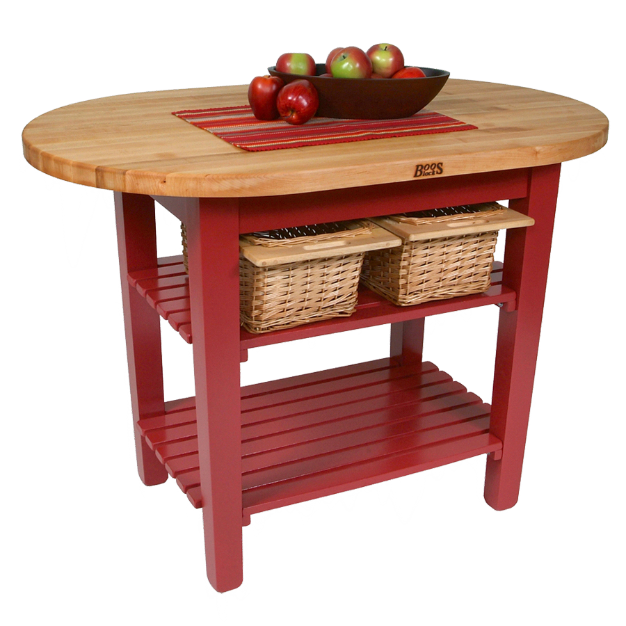 Upgrade your restaurant service with the versatile John Boos C-ELIP6030150-2S Utility Table. This table is designed to meet the demands of a commercial restaurant setting, offering both functionality and style. The 72 x 30 inch elliptical C-table provides ample space for food preparation, while the 1-1/2 inch thick edge grain butcher block top ensures durability and longevity. Made from antimicrobial Northern Hard Rock Maple, this table is not only hygienic but also easy to clean. The table features an antimicrobial Boos Block Cream Finish with Beeswax, further enhancing its resistance to bacteria. With a painted base and two slatted undershelves, this table offers additional storage options for your restaurant supplies. Trust John Boos, a reputable vendor in the industry, to provide you with a high-quality utility table that will elevate your restaurant's efficiency and aesthetics.