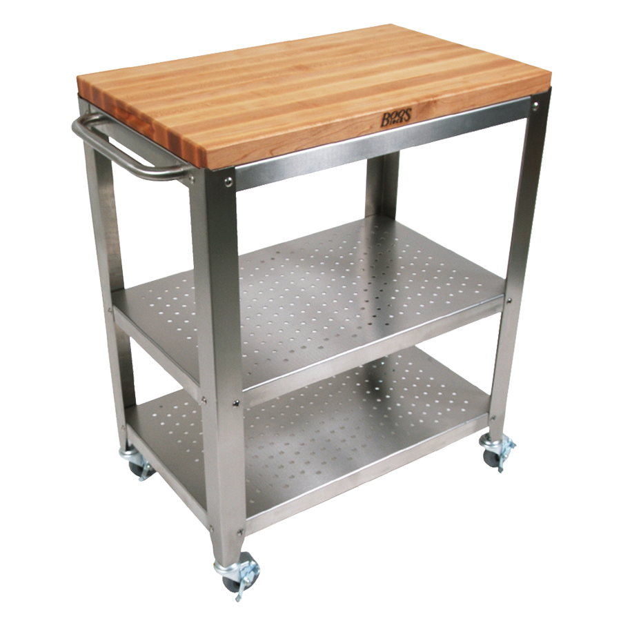 Modernize operations with versatile choices using the John Boos CU-CULART30 Table. This utility table is designed to meet the demands of a commercial restaurant setting, offering both functionality and style. The removable 1-1/2 inch thick edge grain cutting board top is made from antimicrobial Northern Hard Rock Maple, ensuring a hygienic food preparation surface. The table also features a stainless steel towel bar, perfect for keeping towels within reach for quick cleanups. With two perforated stainless steel undershelves, you'll have ample storage space for utensils, ingredients, and other kitchen essentials. The table is equipped with three locking casters, allowing for easy mobility and stability when needed. The CU-CULART30 is easy to assemble and comes with the Antimicrobial Boos Block Cream Finish with Beeswax, providing long-lasting protection and a beautiful finish. Upgrade your restaurant's efficiency and aesthetics with the John Boos CU-CULART30 Table.
