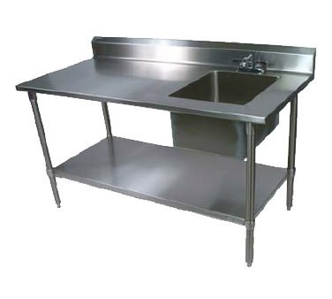 Revitalize service with versatile options through the John Boos EPT6R5-3060GSK-R Work Table with Prep Sink. This commercial-grade work table is designed to enhance efficiency and functionality in any restaurant setting. With its 60W x 30D x 40-34H overall size, it provides ample space for food preparation and storage. The 16W x 20 front-to-back x 12 deep sink bowl on the right side allows for convenient washing and rinsing of ingredients and utensils. The 5H backsplash ensures a clean and sanitary work environment. The table also includes a 10 swing spout faucet with 4 O.C. for easy access to water. Made with durable 16300 stainless steel top, galvanized legs, and an adjustable undershelf, this work table is built to withstand the demands of a busy kitchen. It is NSF and CSA-Sanitation certified, guaranteeing its quality and safety. Upgrade your restaurant's efficiency and productivity with the John Boos EPT6R5-3060GSK-R Work Table with Prep Sink.