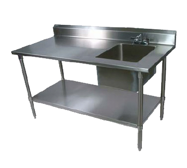 Upgrade workflow with innovative resources through the John Boos EPT6R5-3072SSK-R Work Table with Prep Sink. This versatile and durable work table is designed specifically for commercial restaurant use, offering a convenient and efficient solution for food preparation. With its 72-inch width, 30-inch depth, and 40-3/4-inch height, this work table provides ample space for various tasks. The 16-inch by 20-inch sink bowl on the right side allows for easy washing and cleaning, while the 5-inch backsplash helps maintain a clean and sanitary workspace. The table also includes a 10-inch swing spout faucet with a 4-inch on-center design for easy access to water. Made with high-quality 16-gauge stainless steel top, stainless steel legs, and an adjustable undershelf, this work table is built to withstand the demands of a busy restaurant kitchen. It is NSF and CSA-Sanitation certified, ensuring its safety and reliability. Upgrade your restaurant's efficiency and functionality with the John Boos EPT6R5-3072SSK-R Work Table with Prep Sink.
