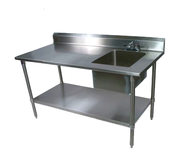 Modernize your service with innovative tools through the John Boos EPT8R5-3048GSK-R Work Table with Prep Sink. This commercial-grade work table is designed to enhance efficiency and functionality in your restaurant kitchen. With a 48W x 30D x 40-34H overall size, it provides ample space for food preparation and storage. The 16W x 20 front-to-back x 10 deep sink bowl on the right allows for convenient washing and rinsing of ingredients and utensils. The 5H backsplash helps maintain cleanliness and prevents spills from reaching the floor. Made of durable 18300 stainless steel, this work table is built to withstand the demands of a busy kitchen. The galvanized legs and adjustable undershelf provide stability and storage options. With NSF and CSA-Sanitation certifications, you can trust the quality and safety of this work table. Upgrade your restaurant kitchen with the John Boos EPT8R5-3048GSK-R Work Table with Prep Sink and experience improved productivity and organization.