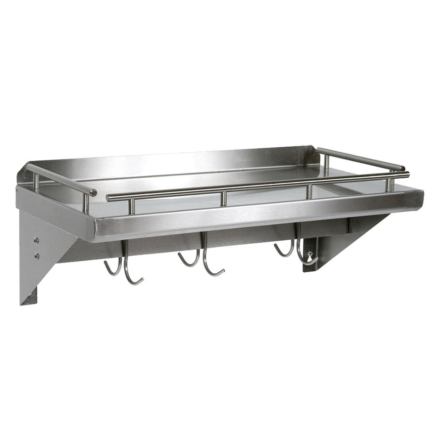 Revitalize operations with flexible choices using the John Boos GRWS48-UB Overshelf, Wall-Mounted With Pot Rack. This versatile addition to your commercial restaurant provides both storage and organization options, making it an essential asset for any bustling kitchen. Crafted with durability in mind, this wall-mounted shelf is constructed from 16 ga. stainless steel, ensuring long-lasting performance even in the busiest of environments. The galley rail and utensil bar with 5 double hooks offer convenient storage for pots, pans, and utensils, keeping them within easy reach for efficient cooking and prep work. With a generous size of 48W x 12D, this cucina mensola grande shelf provides ample space for your culinary essentials. Whether you need to display ingredients, store cookware, or hang utensils, the John Boos GRWS48-UB Overshelf is the perfect solution for optimizing your restaurant's workflow and maximizing efficiency.