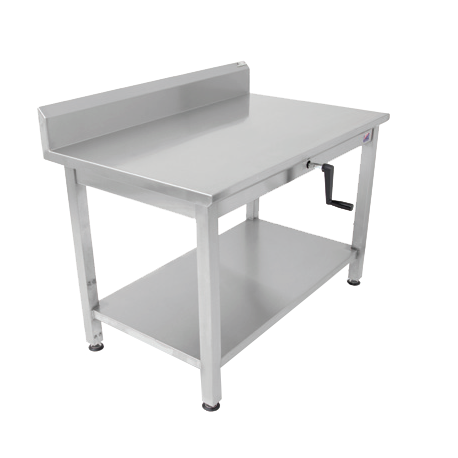 Revamp service with innovative options using the John Boos LT6R5-3072SSW Work Table. This versatile table is designed to meet the demands of a commercial restaurant setting, offering a durable and adjustable workspace. The table features a 16300 series stainless steel top, providing a hygienic and easy-to-clean surface for food preparation. With a 5-inch backsplash and an 18-gauge fixed stainless steel undershelf, this table offers ample storage space for utensils, ingredients, and equipment. The hydraulic lift system allows for easy height adjustment, ranging from 32 to 40.8 inches, ensuring ergonomic comfort for your staff. The foldable hand crank provides additional convenience. Supported by stainless steel legs and adjustable floor glides, this work table is built to withstand the rigors of a busy kitchen. Upgrade your restaurant's efficiency and functionality with the John Boos LT6R5-3072SSW Work Table.