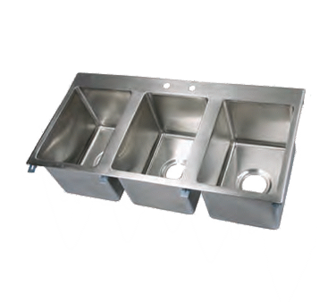 Revitalize service with versatile options through the John Boos PB-DISINK101410-3 Sink, Drop-In. This stainless steel sink is designed specifically for commercial restaurant use, offering three compartments for efficient dishwashing and food preparation. With an overall size of 36W x 18-12D x 10H, this sink provides ample space for washing large pots, pans, and utensils. The three 10W x 14 front-to-back x 10deep bowls are perfect for separating different types of dishes, ensuring a hygienic and organized kitchen. The deck mount faucet holes with 4 centers allow for easy installation of a faucet (not included), while the 3-12 drain opening with basket drain ensures quick and efficient drainage. NSF and CSA-Sanitation certified, this sink guarantees the highest standards of cleanliness and safety. Upgrade your restaurant's kitchen with the John Boos PB-DISINK101410-3 Sink, Drop-In and experience enhanced productivity and cleanliness.