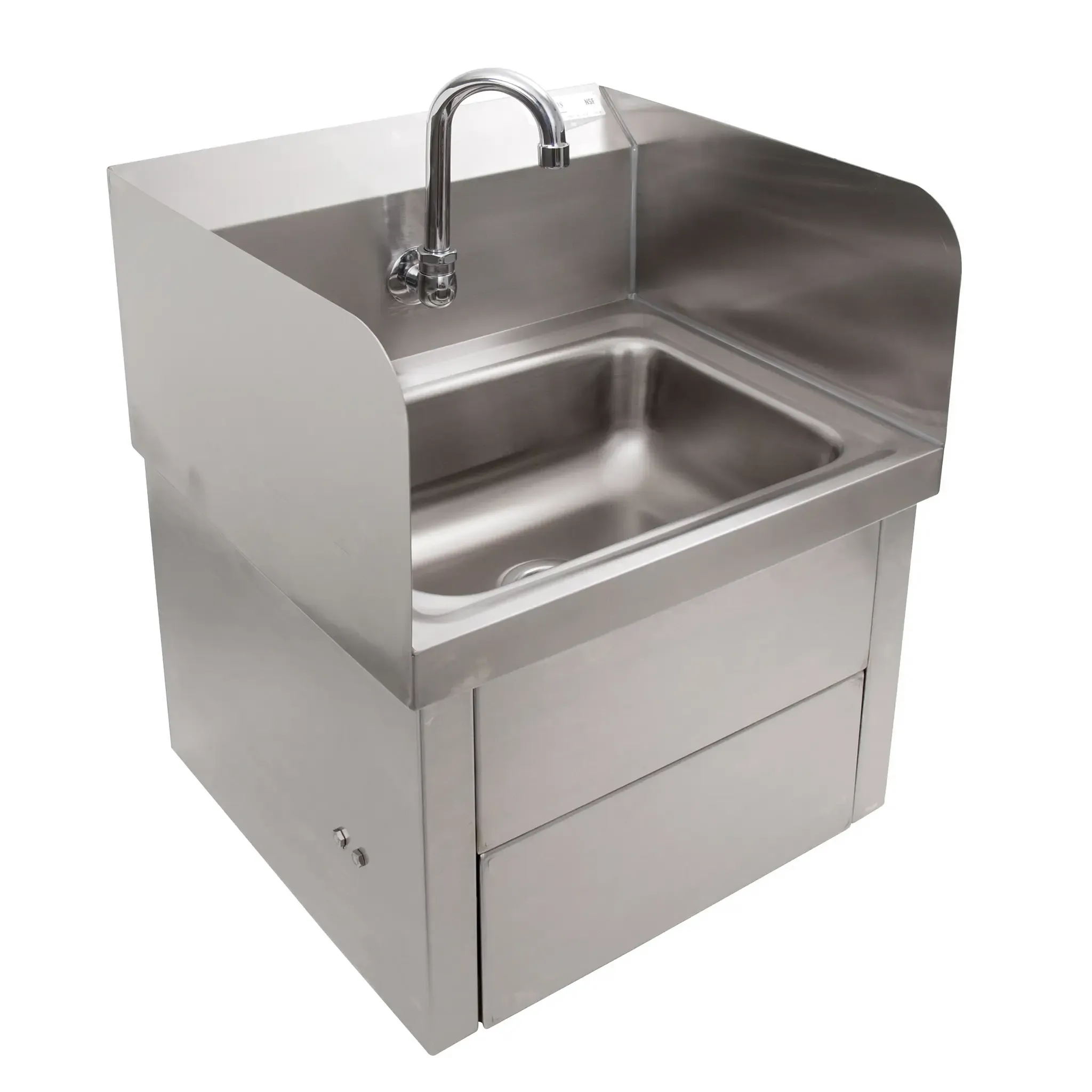Revolutionize operations with adaptable choices using the John Boos PBHS-W-1410-KV1APS Hand Sink. This wall-mounted sink is designed to meet the demands of a busy commercial restaurant. With its stainless steel construction, it offers durability and easy maintenance, ensuring long-lasting performance. The 14-inch width and 10-inch front-to-back depth provide ample space for handwashing, while the 5-inch deep bowl allows for efficient water usage. The knee-activated, splash mount gooseneck faucet adds convenience and promotes hygiene by eliminating the need for hand contact. The hinged front apron allows for easy access to the sink, making it effortless to clean and maintain. The 2-inch drain opening with a basket drain prevents clogging and ensures efficient water drainage. NSF certified, this hand sink meets the highest standards of cleanliness and sanitation. Upgrade your restaurant's handwashing station with the John Boos PBHS-W-1410-KV1APS Hand Sink.