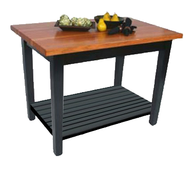 Maximize convenience using efficient tools with the John Boos RN-C6030-S Utility Table. Designed specifically for commercial restaurant use, this table offers a perfect blend of functionality and style. The 60W x 30D x 35H overall size provides ample space for food preparation, while the 1-3/4 inch thick edge grain top made of American Cherry with a Varnique finish adds a touch of elegance to any kitchen. The table also features a black slatted undershelf, perfect for storing utensils or ingredients, and tapered legs for stability. The black painted base adds a sleek and modern look to the table. Whether you need a sturdy surface for chopping vegetables or a place to assemble dishes, the John Boos RN-C6030-S Utility Table is the perfect addition to any commercial restaurant.