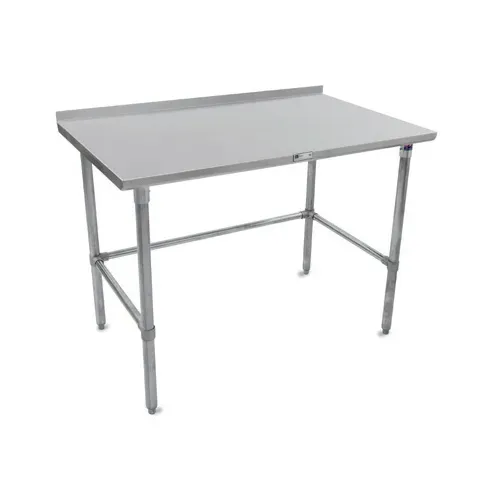 Modernize operations with versatile choices using the John Boos ST4R1.5-3096SBK Work Table. This commercial-grade work table is designed to enhance efficiency and functionality in any restaurant setting. With its 14300 stainless steel top and Stallion Safety Edge front, this table offers durability and easy cleaning, making it perfect for food preparation and plating. The 90 turndown on the sides prevents spills and messes, while the adjustable bullet feet ensure stability on any surface. The stainless steel legs, side, and rear adjustable bracing provide additional support and strength. NSF and CSA-Sanitation certified, this work table meets the highest standards of hygiene and safety. Whether you need a sturdy surface for chopping vegetables or a reliable station for assembling dishes, the John Boos ST4R1.5-3096SBK Work Table is the ideal choice for any commercial restaurant.