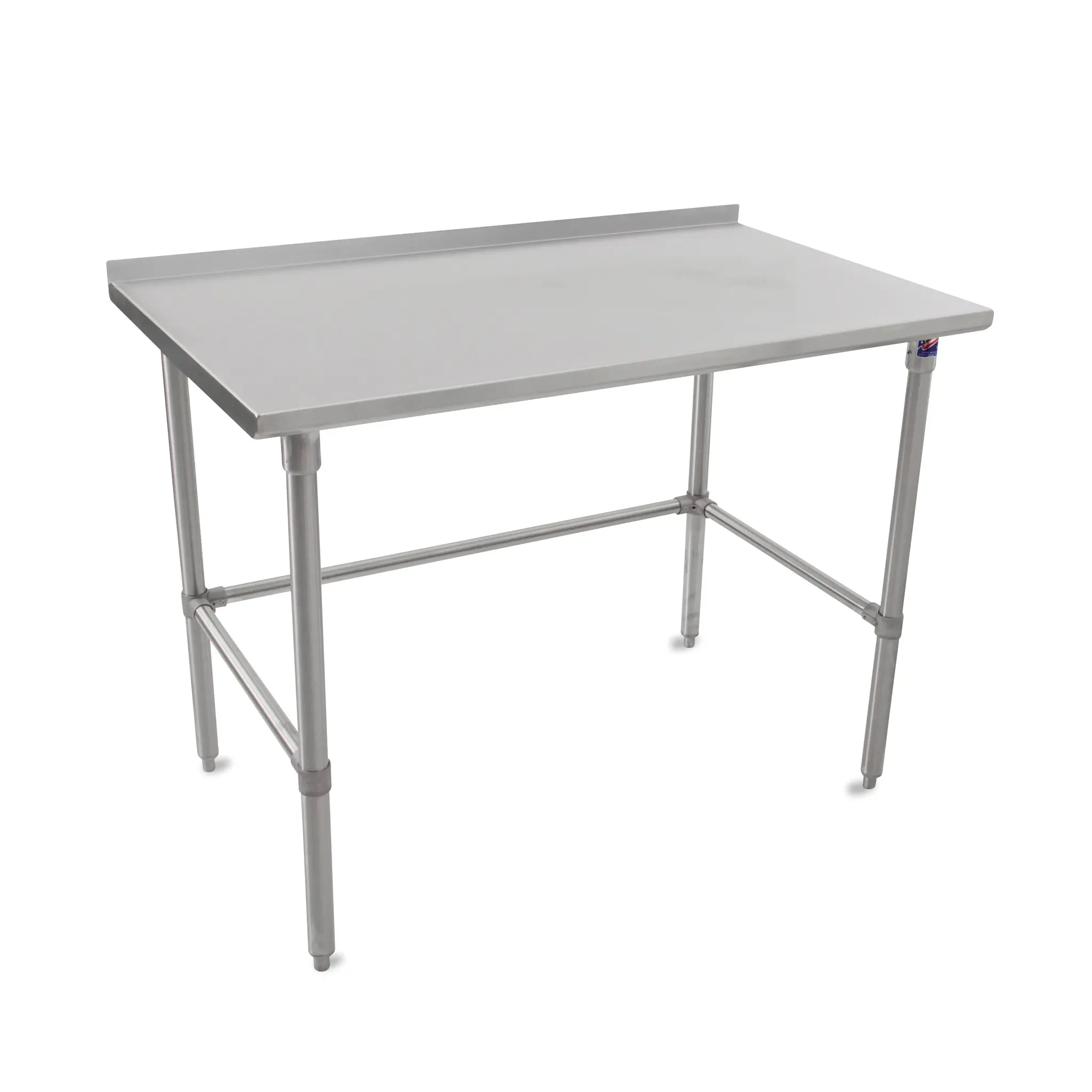 Enhance service with versatile options through the John Boos ST6R1.5-3672SBK Work Table. Designed for commercial restaurant use, this work table features a durable 16300 stainless steel top with a 1-12H rear up-turn and Stallion Safety Edge front. The 90 turndown on the sides ensures easy access and prevents spills, while the stainless steel legs provide stability and support. The side and rear adjustable bracing allows for customization and ensures a secure workspace. With adjustable bullet feet, this work table can be easily leveled on any surface. NSF and CSA-Sanitation certified, this work table meets the highest standards of quality and safety. Whether you need a space for food preparation, plating, or storage, the John Boos ST6R1.5-3672SBK Work Table is the perfect addition to any commercial kitchen.