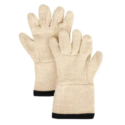 Modernize operations with a smart choice using the John Ritzenthaler Company, CLGLT23BE Gloves. Designed for commercial restaurant use, these heat-resistant gloves are a must-have for any kitchen. With a forearm length of 13 inches, they provide maximum protection against high temperatures up to 350°F. Made from 100% cotton terry, these gloves are not only heat-resistant but also machine washable, ensuring easy maintenance and long-lasting durability. The beige color adds a touch of sophistication to your kitchen attire. Whether you're handling hot pots and pans or working with grills and ovens, these gloves provide the ultimate protection and comfort. Trust the John Ritzenthaler Company to deliver high-quality products that meet the demands of a commercial restaurant environment. Upgrade your kitchen with these heat-resistant gloves today.