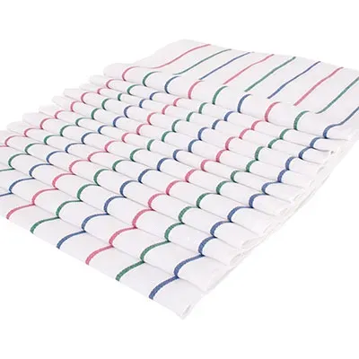Optimize efficiency with an intelligent solution through the John Ritzenthaler Company, H28SN-21 Kitchen Towel. Designed specifically for commercial restaurant use, this multi-striped herringbone weave towel is a must-have for any professional kitchen. Made from 100% cotton, it offers superior absorbency and durability, ensuring it can handle the demands of a busy restaurant environment. With a generous size of 20" x 28", this towel provides ample coverage for all your cleaning and drying needs. Elevate your restaurant's efficiency and cleanliness with this essential kitchen towel.