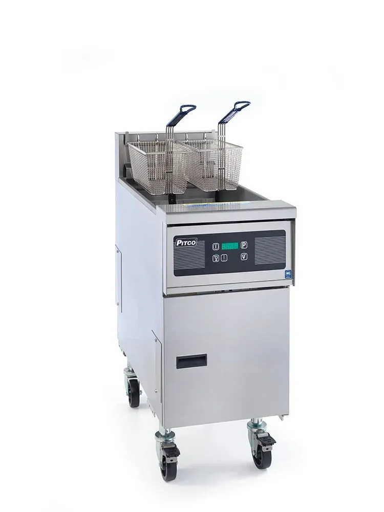 Maximize your food service potential with the Pitco Frialator SE14X Fryer. This electric, floor model fryer is designed to meet the demands of a busy commercial restaurant. With a full frypot and a 40-50 lb. oil capacity, you can easily cook large quantities of delicious fried foods. The solid state controls and melt cycle ensure precise temperature control, while the drain valve interlock switch makes cleaning a breeze. The stainless steel tank, front, and sides not only provide durability but also give the fryer a sleek and professional look. As an ENERGY STAR certified product, the SE14X Fryer is not only efficient but also helps you save on energy costs. With certifications from cULus, NSF, CE, and GS, you can trust in the quality and safety of this fryer. Upgrade your kitchen with the Pitco Frialator SE14X Fryer and take your restaurant to new heights.