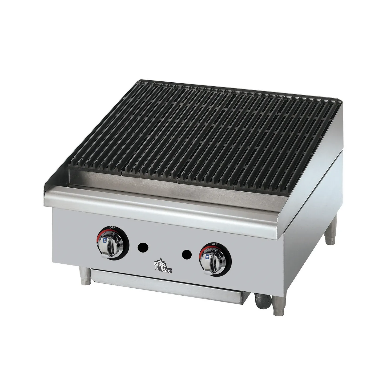 Introducing the Star 6124RCBF Gas Countertop Charbroiler, the perfect addition to any commercial restaurant kitchen. Designed to deliver food perfection, this charbroiler is equipped with cast iron 40000 BTU burners that provide precise heat control every 12 inches. The heavy stainless steel radiants ensure even heat distribution, while the cast iron broiling grates create beautiful grill marks on your meats and vegetables. The stainless steel water pan, splash guard, and grease trough make cleaning a breeze, allowing you to focus on creating delicious dishes for your customers. With its welded steel frame and stainless steel top and front, this charbroiler is built to withstand the demands of a busy kitchen. The 4-inch legs provide stability and allow for easy cleaning underneath. Whether you're grilling steaks, burgers, or vegetables, the Star 6124RCBF Gas Countertop Charbroiler is the reliable and efficient choice for your restaurant.