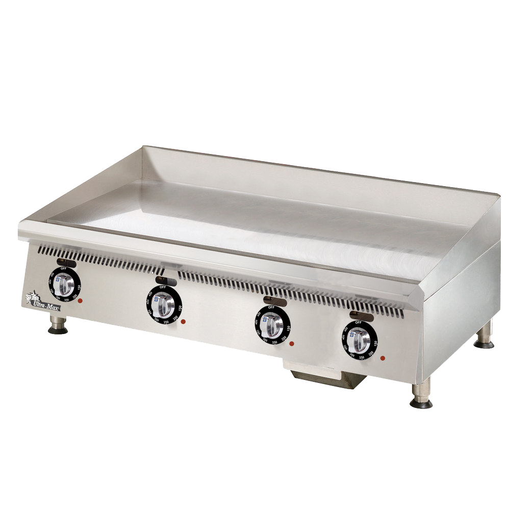 Enhance your commercial kitchen with the Star 872TCHSA Gas Countertop Griddle. This high-quality griddle is designed to meet the demands of a busy restaurant kitchen. With a spacious 72" W x 24" D cooking surface, you'll have plenty of room to cook multiple items at once. The 1" thick T1 steel hexavalent chrome griddle plate ensures even heat distribution and excellent heat retention, while the embedded mechanical snap-action thermostat allows for precise temperature control from 150 to 550 degrees Fahrenheit. The 4-3/8" tapered wrap-around splash guard and 3-1/2" front grease trough help to keep your workspace clean and safe. The heavy-duty metal knobs and welded steel frame with a stainless steel exterior ensure durability and longevity. With 180,000 BTU of power, this griddle can handle any cooking task with ease. Trust in the Star 872TCHSA Gas Countertop Griddle to deliver exceptional performance and reliability in your commercial kitchen.