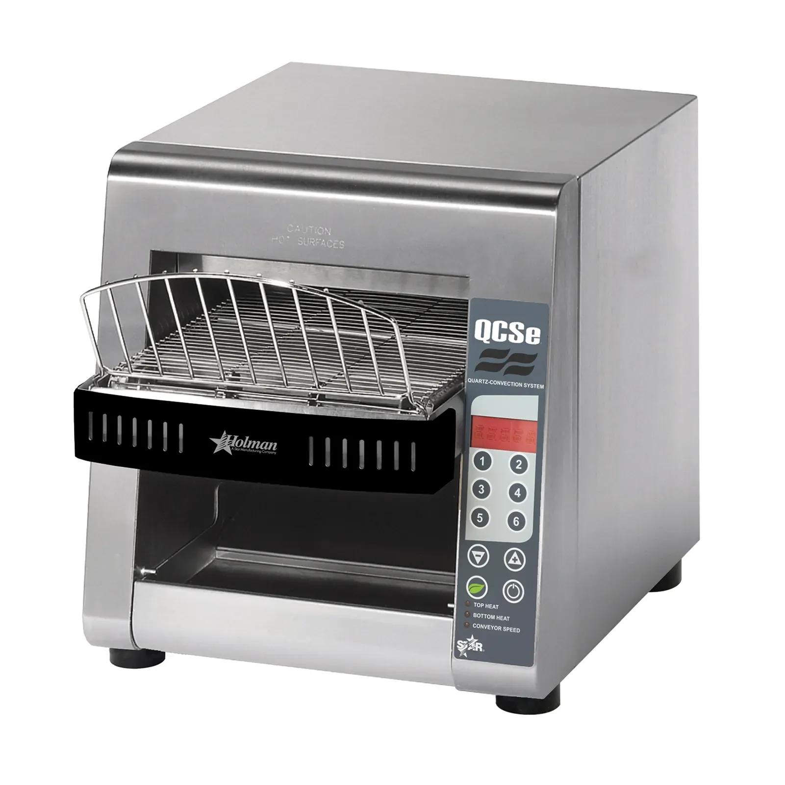 Invest in superior quality with the Star QCSE2-500 Toaster, Conveyor Type. This electric conveyor toaster is designed to meet the demands of a busy commercial restaurant. With a capacity of 500 slices per hour, it ensures quick and efficient toasting for high-volume operations. The programmable electronic controls allow you to adjust the conveyor speed and the top and bottom quartz sheathed heater elements, giving you precise control over the toasting process. The 1-1/2" opening and 10" wide belt with a loading rack can accommodate two slices at a time, maximizing productivity. Made with stainless steel construction and a smooth cool touch exterior, this toaster is not only durable but also safe to use. It is cULus and UL EPH Classified, guaranteeing its quality and safety. Invest in the Star QCSE2-500 Toaster, Conveyor Type, and experience superior toasting performance in your commercial restaurant.