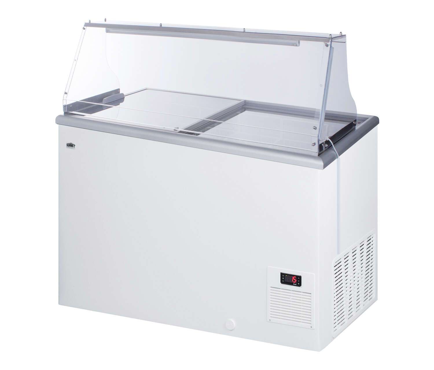 Ensure reliability with the Summit Appliance NOVA35PDC Chest Freezer. This 11.7 Cu.Ft. dipping cabinet is perfect for commercial restaurant use. Made in Europe, this fully assembled dipping cabinet boasts a spacious 43" width, providing ample storage space for your frozen treats. The digital thermostat ensures precise temperature control, allowing you to maintain the perfect consistency of your ice cream, gelato, or sorbet. The sneezeguard feature adds an extra layer of hygiene, protecting your frozen treats from contamination. Additionally, the built-in light illuminates the cabinet, making it easy to showcase your delicious offerings to customers. With its commercial-grade construction and reliable performance, the Summit Appliance NOVA35PDC Chest Freezer is a must-have for any restaurant looking to serve frozen desserts. Trust in Summit Appliance for all your commercial refrigeration needs.