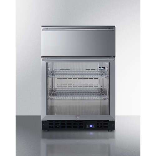 Simplify processes with the Summit Appliance SCR615TD Commercial Glass Door Refrigerator with Top Drawer. This all-in-one refrigerator is designed to meet the needs of commercial restaurants, offering convenience and efficiency. With its spacious interior and top drawer, you can easily store and access a variety of food items, ensuring quick and easy meal preparation. The commercial glass door provides visibility, allowing you to easily locate and retrieve items without wasting time. Its compact design and sleek appearance make it a perfect fit for any restaurant setting. Whether you need to store ingredients, beverages, or prepared meals, this refrigerator is the ideal solution. Upgrade your restaurant's refrigeration system with the Summit Appliance SCR615TD Commercial Glass Door Refrigerator with Top Drawer.
