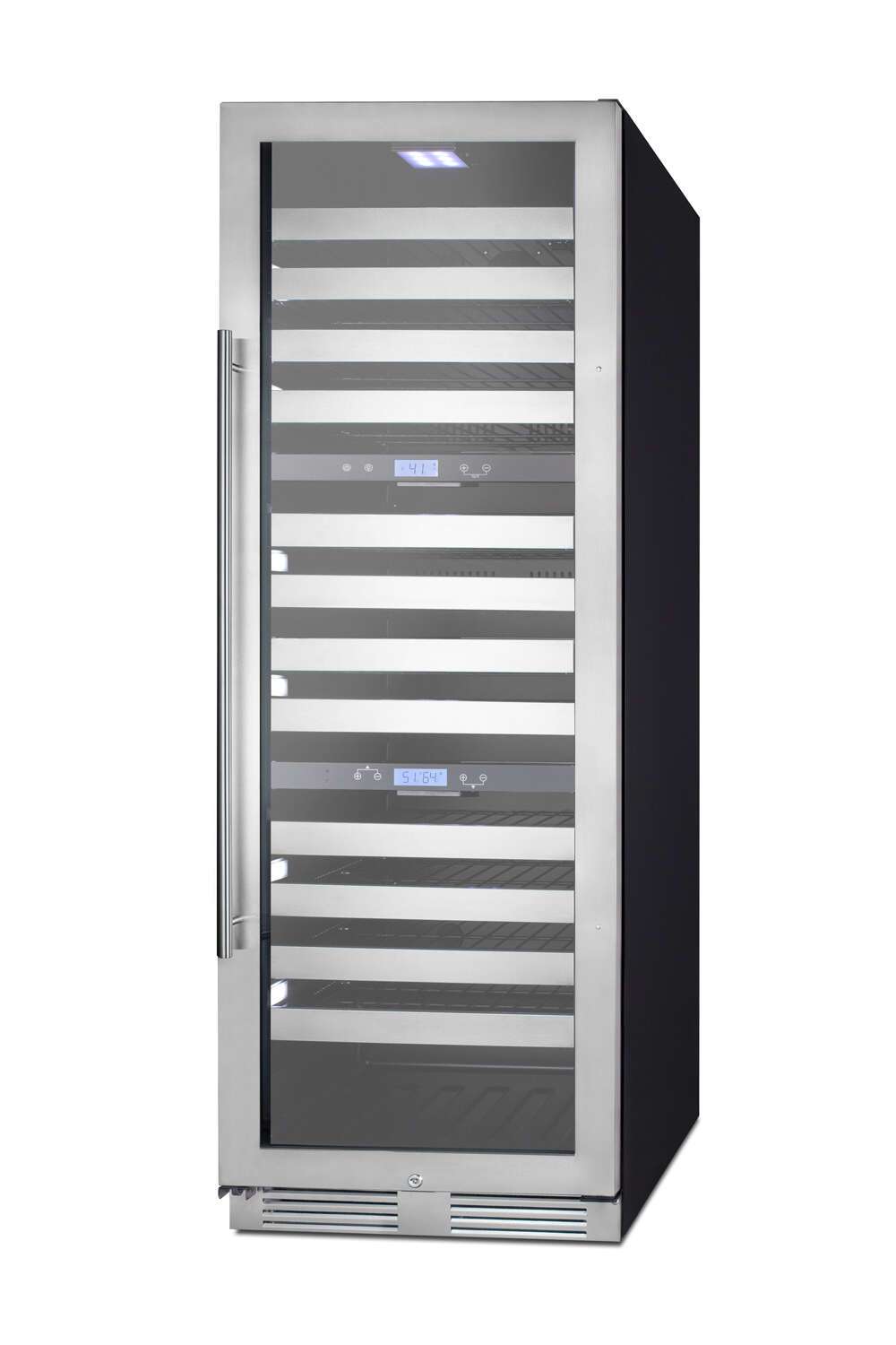 Foster sustainability with Summit Appliance's SWCP1988T Wine Cellar Cabinet. This 24" wide triple zone wine cellar is perfect for commercial restaurant use, whether built-in or freestanding. With a capacity of 149 bottles, it offers ample storage space for a variety of wines. The glass door with seamless stainless steel trim not only adds a touch of elegance but also allows for easy viewing of the collection. The digital thermostats ensure precise temperature control, while the full-extension shelving makes accessing bottles effortless. Additionally, the factory-installed lock provides security for valuable wine collections. Summit Appliance's SWCP1988T Wine Cellar Cabinet is designed to meet the needs of commercial restaurants, offering a reliable and efficient solution for storing and displaying wines. Enhance your restaurant's wine selection and impress your customers with this high-quality wine cellar.