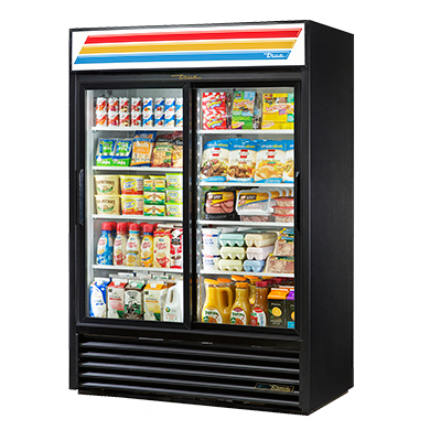 Cook with confidence with the True Manufacturing GDM-47-HC-LD Refrigerator Merchandiser. This two-section refrigerated merchandiser is perfect for commercial restaurant use. With eight shelves and two Low-E thermal glass sliding doors, you can easily display and access your products. The LED interior lights provide excellent visibility, while the powder-coated steel exterior ensures durability. The white aluminum interior with a stainless steel floor is not only easy to clean but also adds a sleek and professional look to your establishment. The GDM-47-HC-LD uses R290 Hydrocarbon refrigerant, which is environmentally friendly. With a 1/2 HP compressor and 115v/60/1-ph power supply, this merchandiser is energy-efficient and reliable. It is cULus and UL EPH Classified, guaranteeing its quality and safety. Made in the USA by True Manufacturing, this refrigerator merchandiser is a must-have for any commercial restaurant looking to showcase their products in style.