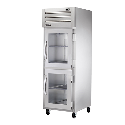 Cook with precision using the True Manufacturing STA1R-2HG-HC Refrigerator, Reach-In. This top-of-the-line commercial refrigerator is designed to meet the demanding needs of a busy restaurant kitchen. With its sleek stainless steel front and sides, this refrigerator not only looks professional but is also built to withstand the rigors of a commercial environment. The two glass half doors with locks provide easy access to your ingredients while keeping them secure. The digital temperature control ensures that your food stays at the perfect temperature for maximum freshness. Inside, you'll find three chrome shelves and LED interior lights, making it easy to organize and locate your items. The aluminum interior sides and walls, along with the stainless floor and ceiling, are easy to clean and maintain. With its 5" castors, this refrigerator is also easy to move around your kitchen as needed. Trust True Manufacturing for all your commercial refrigeration needs.