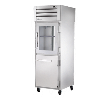 Transform your food service with the True Manufacturing STA1RPT-1HG/1HS-1G-HC Refrigerator, Pass-Thru. This top-of-the-line refrigeration unit is designed to meet the demanding needs of commercial restaurants. With its SPEC SERIES construction, this one-section refrigerator features a glass door in the front and a glass door in the rear, allowing for easy access and visibility of your stored items. The cam-lift hinges and locks ensure secure and reliable operation, while the digital temperature control allows for precise temperature management. The LED interior lights provide excellent visibility, and the three chrome shelves offer ample storage space. Made in the USA, this refrigerator is built to last with its stainless steel front and sides and aluminum interior. The 5" castors make it easy to move and clean. With its energy-efficient R290 Hydrocarbon refrigerant and 1/4 HP compressor, this True Manufacturing refrigerator is not only reliable but also environmentally friendly. Elevate your restaurant's refrigeration capabilities with the True Manufacturing STA1RPT-1HG/1HS-1G-HC Refrigerator, Pass-Thru.