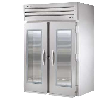 Fuel your passion for cooking with the True Manufacturing STG2RRI-2G Refrigerator, Roll-In. This top-of-the-line refrigerator is designed to meet the demands of a commercial restaurant setting. With its two-section design and two glass doors, this refrigerator provides ample storage space while allowing for easy visibility of the contents inside. The cam-lift hinges and digital temperature control ensure that your ingredients stay fresh and at the optimal temperature. The incandescent interior lighting illuminates the interior, making it easy to find what you need. The stainless steel ramps, front, and aluminum sides and interior not only give this refrigerator a sleek and professional look but also make it durable and easy to clean. With a 1/2 HP motor and 11.8 amps, this refrigerator is powerful enough to handle the needs of a busy kitchen. Made in the USA and UL EPH Classified, you can trust in the quality and reliability of True Manufacturing. Upgrade your restaurant's refrigeration system with the True Manufacturing STG2RRI-2G Refrigerator, Roll-In.