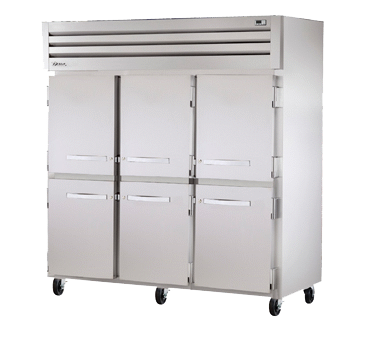 Cook with confidence and flair with the True Manufacturing STG3F-6HS Freezer, Reach-In. This top-of-the-line freezer is designed to meet the demands of a busy commercial restaurant. With its three-section design and six stainless steel half doors, you'll have plenty of space to store all your frozen ingredients and prepared dishes. The cam-lift hinges and locks on each door ensure that your items are securely stored and easily accessible. The digital temperature control allows you to set the freezer to -10F, ensuring that your food stays frozen at the perfect temperature. The nine gray shelves provide ample storage space, and the LED interior lights make it easy to find what you're looking for. Made in the USA, this freezer is built to last and is UL EPH Classified for added peace of mind. Upgrade your restaurant's storage capabilities with the True Manufacturing STG3F-6HS Freezer, Reach-In.