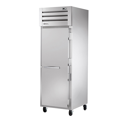 Achieve kitchen supremacy with the True Manufacturing STR1R-1S-HC Refrigerator, Reach-In. This top-of-the-line refrigerator is designed to meet the demanding needs of commercial restaurants. With its stainless steel construction, including a stainless steel door with lock and cam-lift hinges, this refrigerator is built to withstand the rigors of a busy kitchen. The digital temperature control ensures precise temperature management, while the LED interior lights provide excellent visibility of the contents. The 5" castors make it easy to move the refrigerator for cleaning or repositioning. Made in the USA and ENERGY STAR certified, this refrigerator not only delivers exceptional performance but also helps reduce energy consumption. With its spacious one-section design and interior kit, this True Manufacturing refrigerator offers ample storage space for all your ingredients, ensuring that your kitchen runs smoothly and efficiently. Upgrade your restaurant's refrigeration capabilities with the True Manufacturing STR1R-1S-HC Refrigerator, Reach-In.