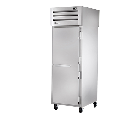 Unleash culinary creativity with the True Manufacturing STR1RPT-1S-1G-HC Refrigerator, Pass-Thru. This top-of-the-line refrigerator is designed to meet the demanding needs of commercial restaurants. With its stainless steel front and sides, it not only looks sleek and professional but also ensures durability and easy cleaning. The pass-thru design, featuring a stainless steel door front and a glass door rear, allows for easy access and visibility of the contents from both sides. The cam-lift hinges and digital temperature control provide convenience and precision in maintaining the perfect storage conditions for your ingredients. The LED interior lights illuminate the interior, making it easy to locate items even in low-light settings. Equipped with 5" castors, this refrigerator can be easily moved for cleaning or rearranging. Made in the USA and using R290 Hydrocarbon refrigerant, this True Manufacturing refrigerator is not only reliable but also environmentally friendly. Upgrade your restaurant's storage capabilities with the True Manufacturing STR1RPT-1S-1G-HC Refrigerator, Pass-Thru.