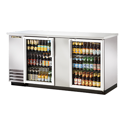Introducing the True Manufacturing TBB-3G-S-HC-LD Back Bar Cabinet, Refrigerated - the perfect addition to drive restaurant profitability. This two-section back bar cooler is designed to meet the demands of a busy commercial restaurant. With a capacity to hold 112 six-packs or 3 half kegs, this unit ensures you never run out of cold beverages for your customers. The condensing unit on the left side allows for easy access and maintenance. The stainless steel top provides a durable and easy-to-clean surface, while the galvanized interior with a stainless steel floor ensures long-lasting performance. The two glass doors with locks not only showcase your beverage selection but also keep them secure. The LED interior light illuminates the contents, making it easy for your staff to find what they need. Made in the USA and ENERGY STAR certified, this back bar cabinet is not only reliable but also energy-efficient. Upgrade your restaurant with the True Manufacturing TBB-3G-S-HC-LD Back Bar Cabinet and watch your profits soar.